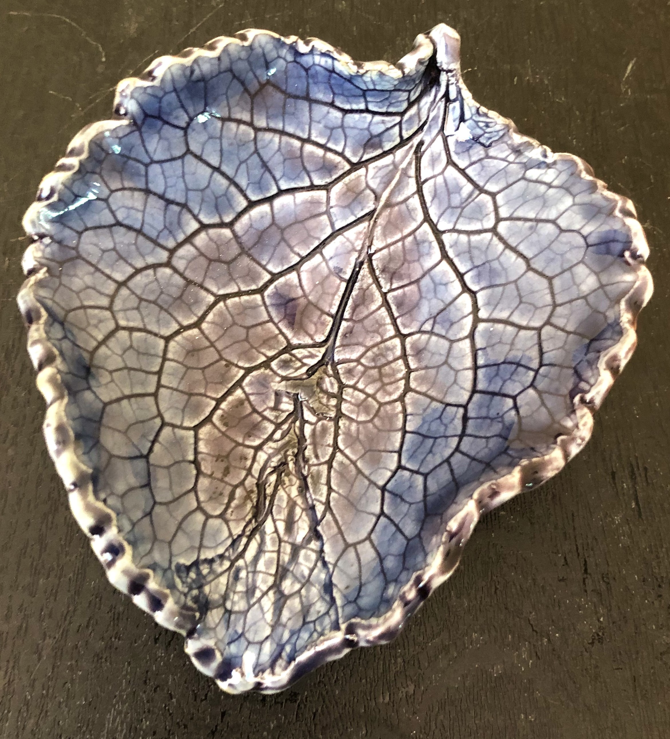 lifesize Foxglove leaf shape with Huckleberry Glaze